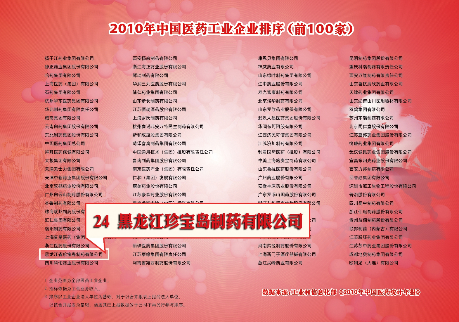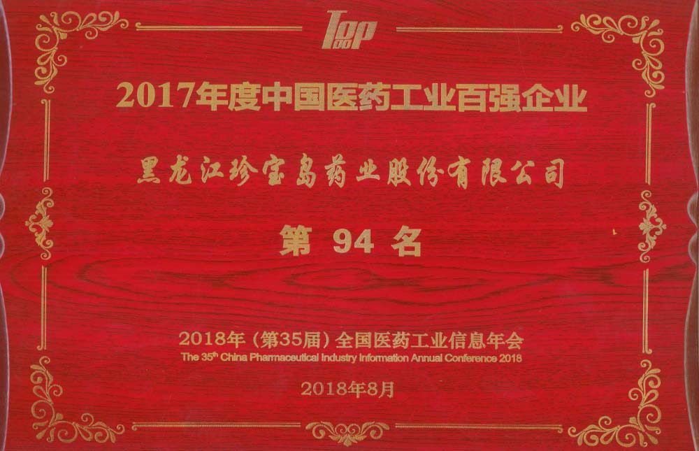 黑龍江珍寶島藥業股份有限公司成立。企業躋身中國醫藥工業第15強。