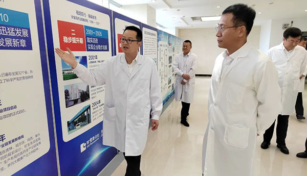 7月18日上午,黑龍江省政府副省長張起翔赴珍寶島藥業(yè)雞西分公司調(diào)研,省政府副秘書長許振宇,雞西市市長孫成坤、副市長李春宇等領(lǐng)導陪同調(diào)研。雞西分公司總經(jīng)理王春生、行政副總錢向軍全程接待。