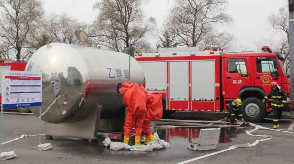 本次演練,模擬公司乙醇儲罐發(fā)生泄漏事故,公司立即啟動《危險(xiǎn)化學(xué)品泄漏事故專項(xiàng)應(yīng)急預(yù)案》,并向雞冠區(qū)應(yīng)急管理局報(bào)告事故情況。雞冠區(qū)應(yīng)急管理局啟動區(qū)應(yīng)急預(yù)案,公安、消防、急救中心等政府救援部門以最快的速度趕赴現(xiàn)場,成立了以區(qū)政府為中心的應(yīng)急指揮中心,在區(qū)領(lǐng)導(dǎo)的指揮下,在消防中隊(duì)等社會力量的不懈努力下,險(xiǎn)情得到控制。